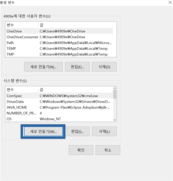 1. %JAVA_HOME%₩bin 을 입력해주세요 (오타없이!)
