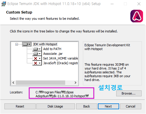 다운받은 설치파일을 열고 경로를 설정하거나 경로를 확인한다