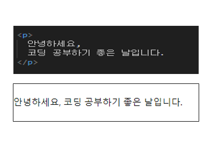 HTML은 모든 명령이나 지시를 태그로 해야 하기 때문에 실제로는 한 줄로 출력되는 것이다.