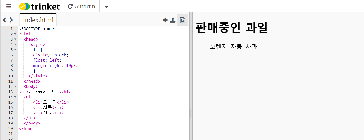 # ul 태그 가로 배열