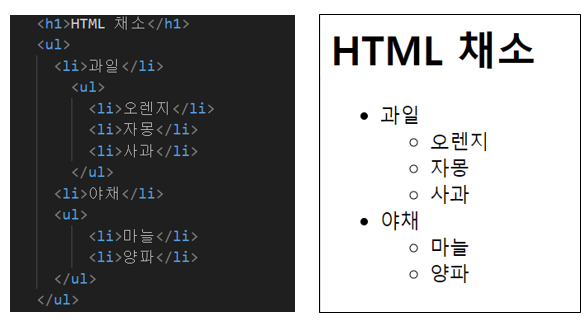 ul 태그는 중첩해서 사용할 수 있는데 중첩시 초기 설정은 내부 태그는 흰 원 아이콘으로 변경된다.