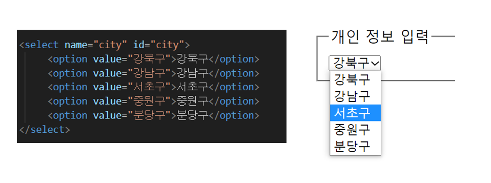 <option value="서버에 전송할 값">웹 브라우저에 표시할 값</option>