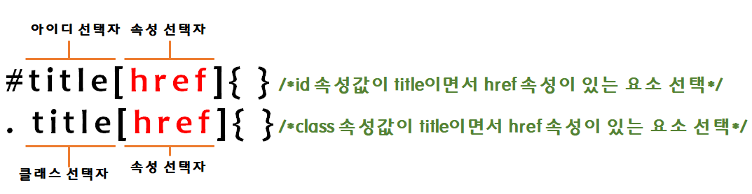 [id="title]{} /* 기본 속성 선택자 방법으로 id 속성값이 title인 요소 선택 */