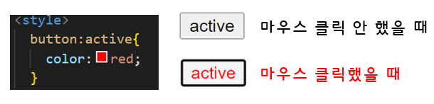 : active 선택자는 태그를 마우스로 클릭하면 해당 태그가 선택자로 지정된다.
