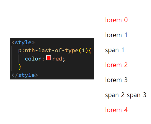 <p>lorem 4</p> /* 부모인 div 태그의 자식 중 마지막 p 태그에 스타일 적용 */