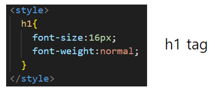 원래 텍스트 크기가 더 크고 굵었던 h1 태그 스타일이 변경되었는데 이것은 기본 스타일 시트에 정의된 스타일 속성보다