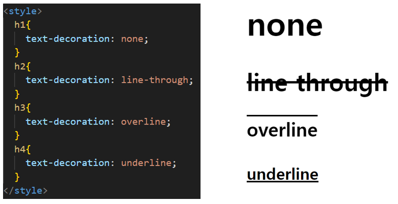 text-decoration:<속성값>;