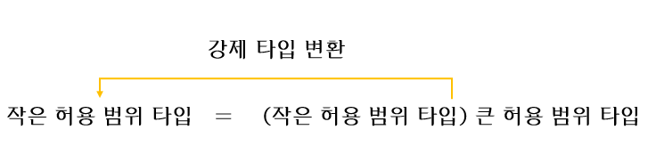 강제 타입의 목적은 원래 값이 유지되면서 타입만 바꾸는 것으로 작은 허용 범위 타입에 저장될 수 있는 값을 가지고