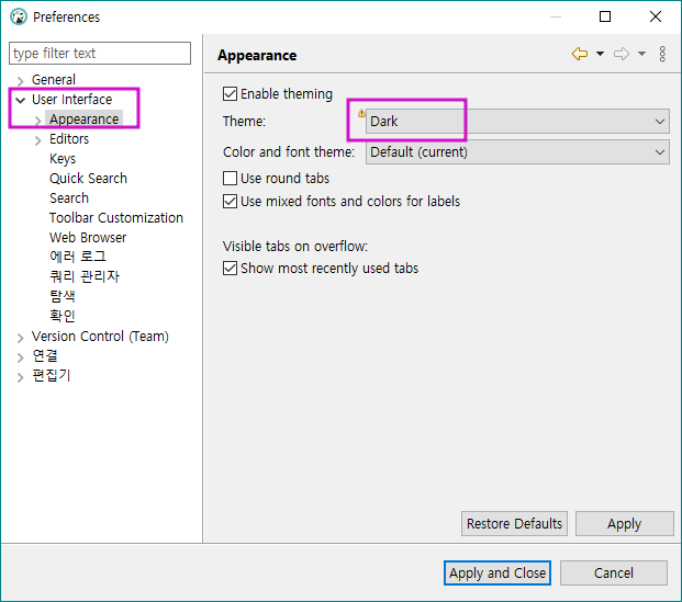 - 폰트 및 테마 색상 변경