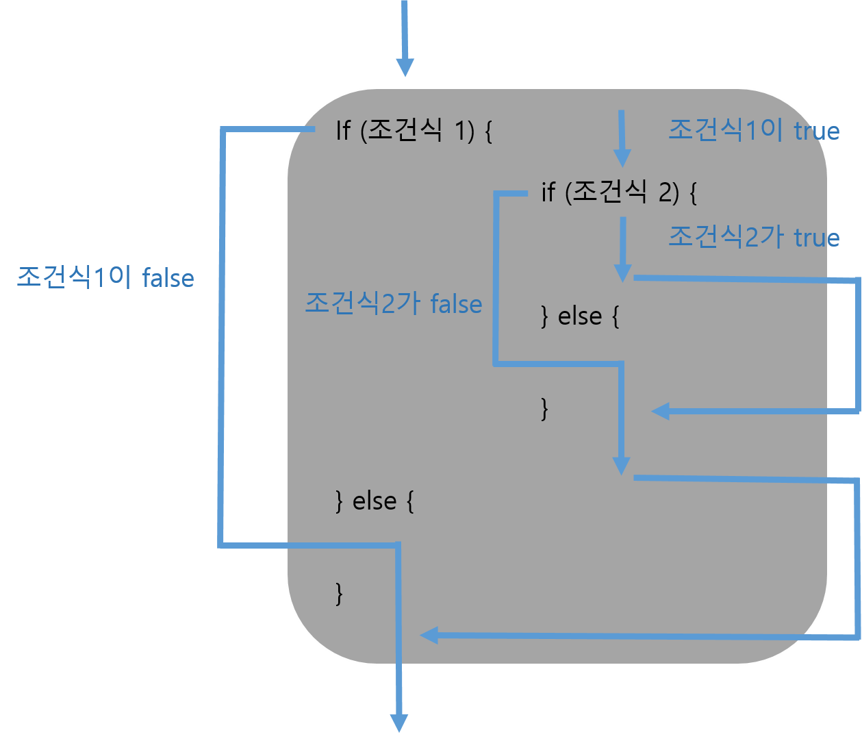 if문의 블록 내부에는 또 다른 if문을 사용할 수 있다.