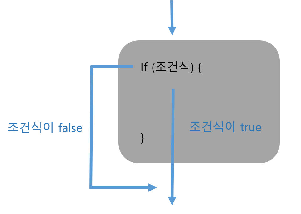 조건식이 true면 블록을 실행하고 false이면 블록을 실행하지 않는다.