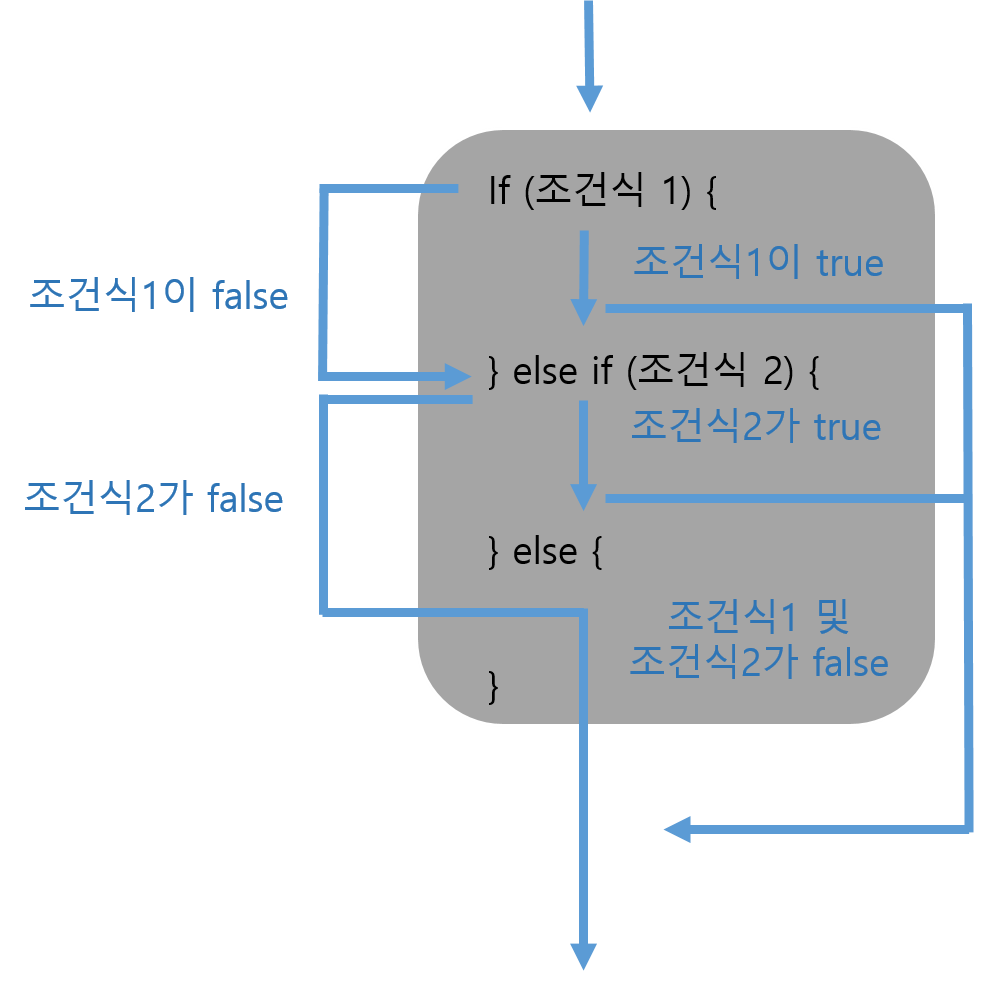 상위 조건식이 false일 경우 평가되고, else if가 true이면 해당 블록이 실행된다.