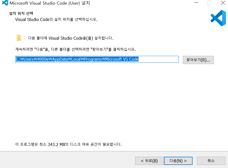 위치를 따로 지정할 것이 아니면 기본 설정된 경로에 설치하면 된다.