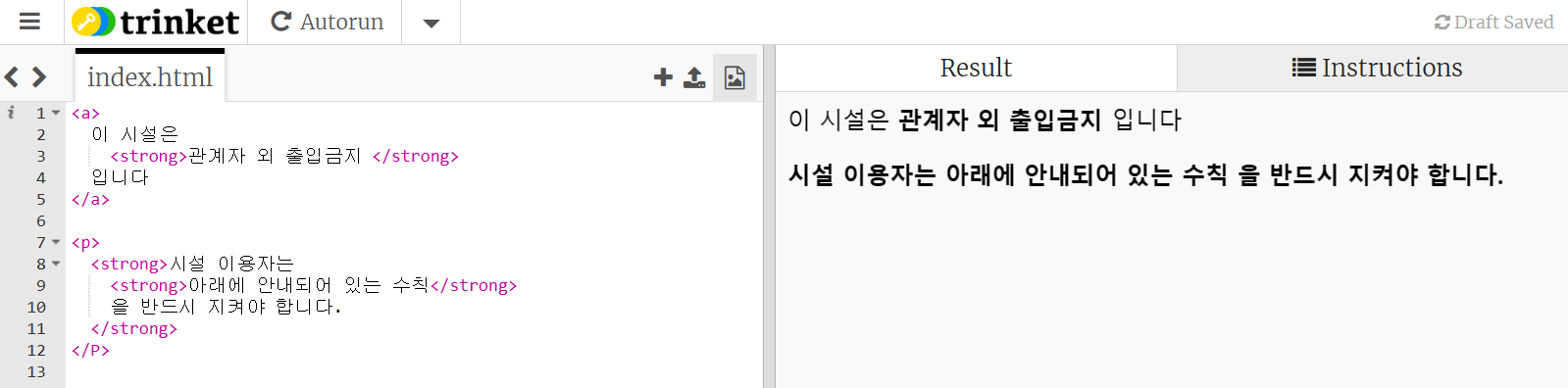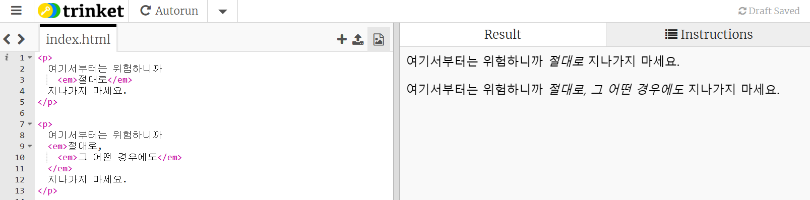 strong 태그는 중첩이 가능하다 실행결과는 동일하지만 구조적으로 더 중요한 부분임을 의미하게 된다.