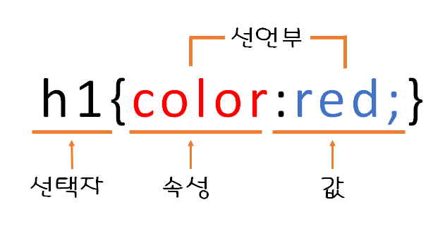 CSS 문법은 크게 선택자와 선언부로 구분한다.