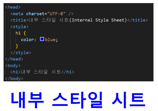 내부 스타일 시트(internal style sheet)는 HTML 파일 내부에 CSS 코드를 작성하는 방법이다.