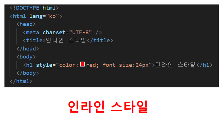 <h1 style="color:red; font-size:24px">인라인 스타일</h1>