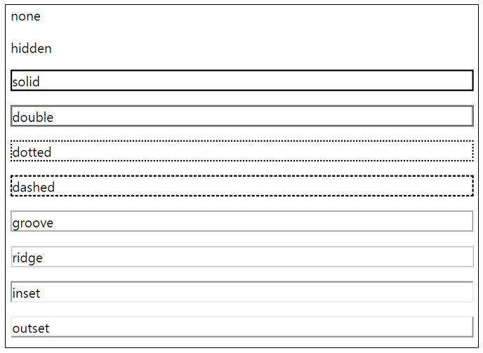 | outset | 테두리를 요소가 튀어나온 것처럼 그린다. |
