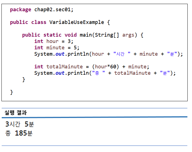변수는 출력문이나 연산식에 사용되어 변수값을 활용한다.