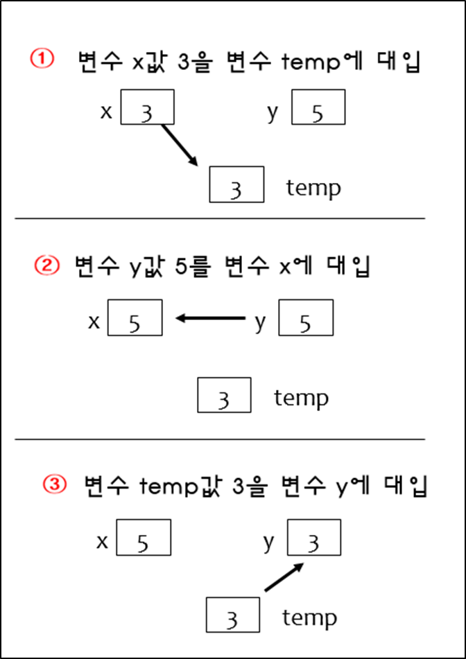 변수는 또 다른 변수에 대입되어 메모리 간에 값을 복사할 수 있다.