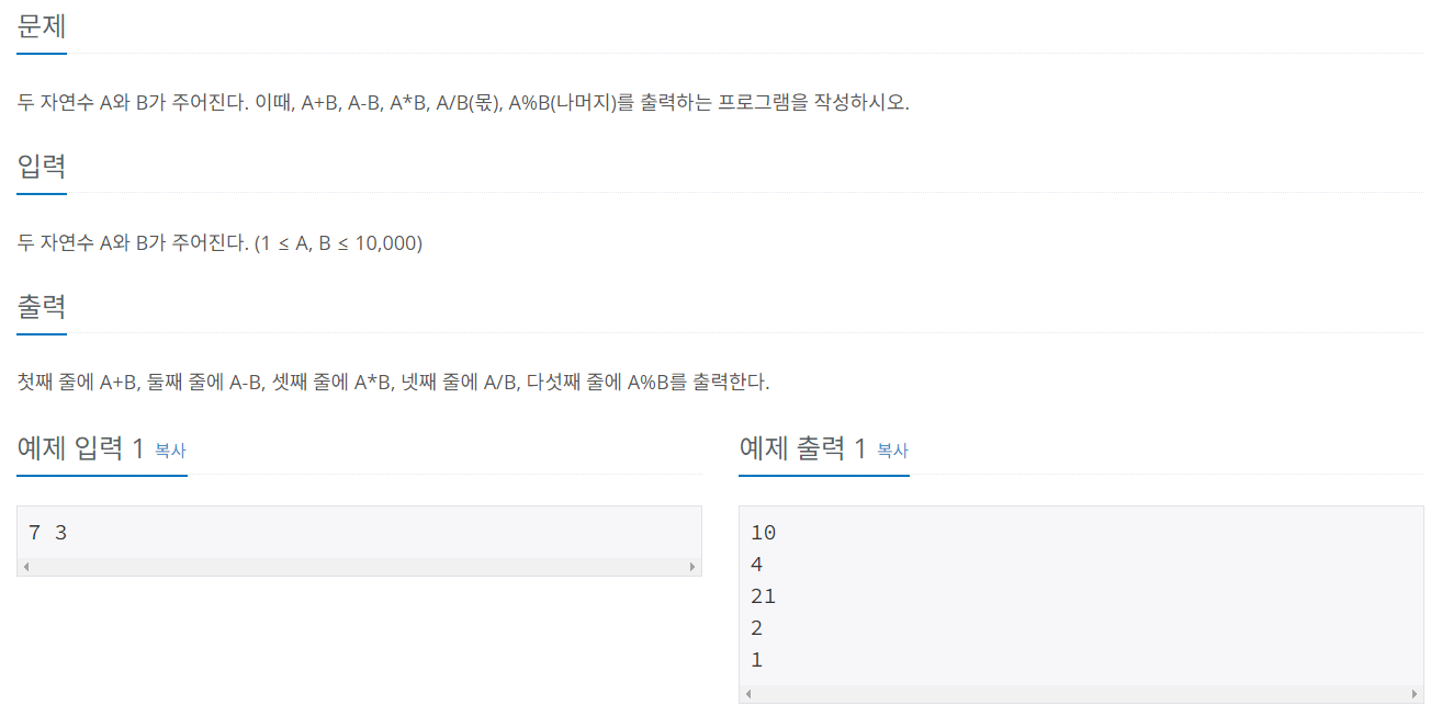백준 문제풀기 > 입출력과 사칙연산 정답 코드